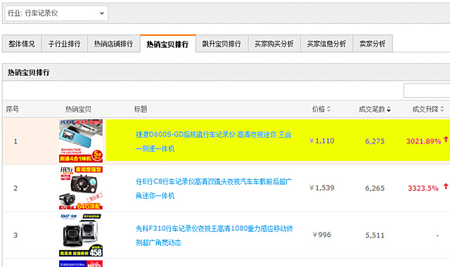 在天貓, 捷渡行車記錄儀產品熱銷排行第一 :