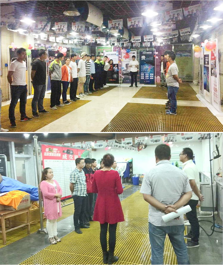 “用心做最好”,經過遠界團隊的用心裝飾,店里處處洋溢著熱情。“信心鑄佳績”,9月7日開始路展邀約,向客戶介紹活動,展示購機大禮捷渡車用大禮包,接受客戶預訂體驗。