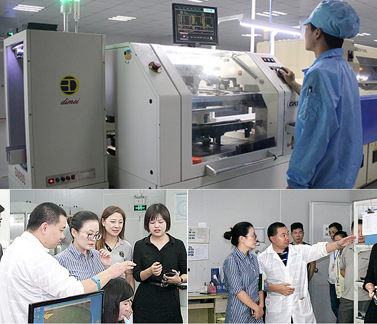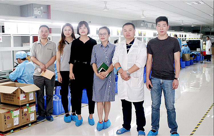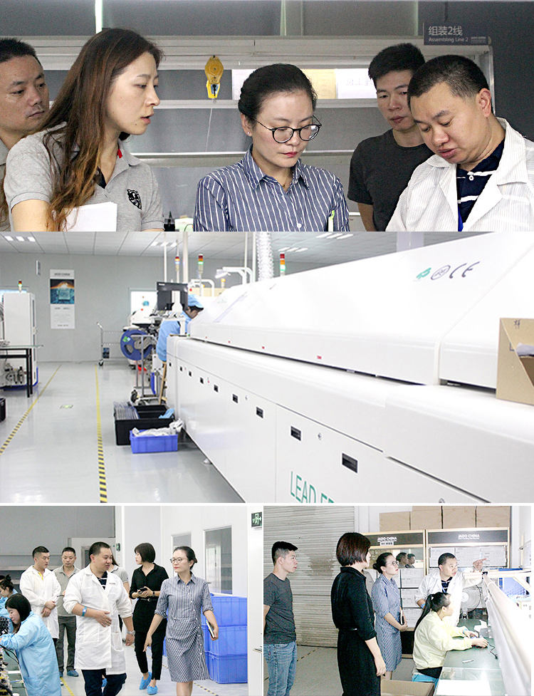 會談結束后,廣匯集團一行參觀JADO捷渡智能(中國)深圳生產基地,廣匯集團高級集采經理黃曄女士對現代化自動設備、百級無塵鏡頭車間、復雜眾多的產品檢測設備及檢測流程做了深入的了解。