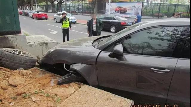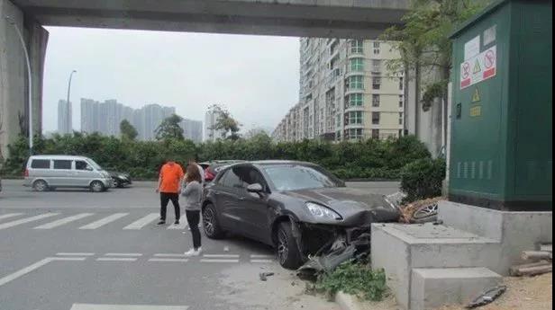 2018年3月19日,在廣東珠海,一輛保時捷車行駛在港昌路最右側車道上,被左側的一輛本田車突然地向右變道給撞到左側車身,然后失控朝著右前方的路基沖去,撞到水泥底座才停下。