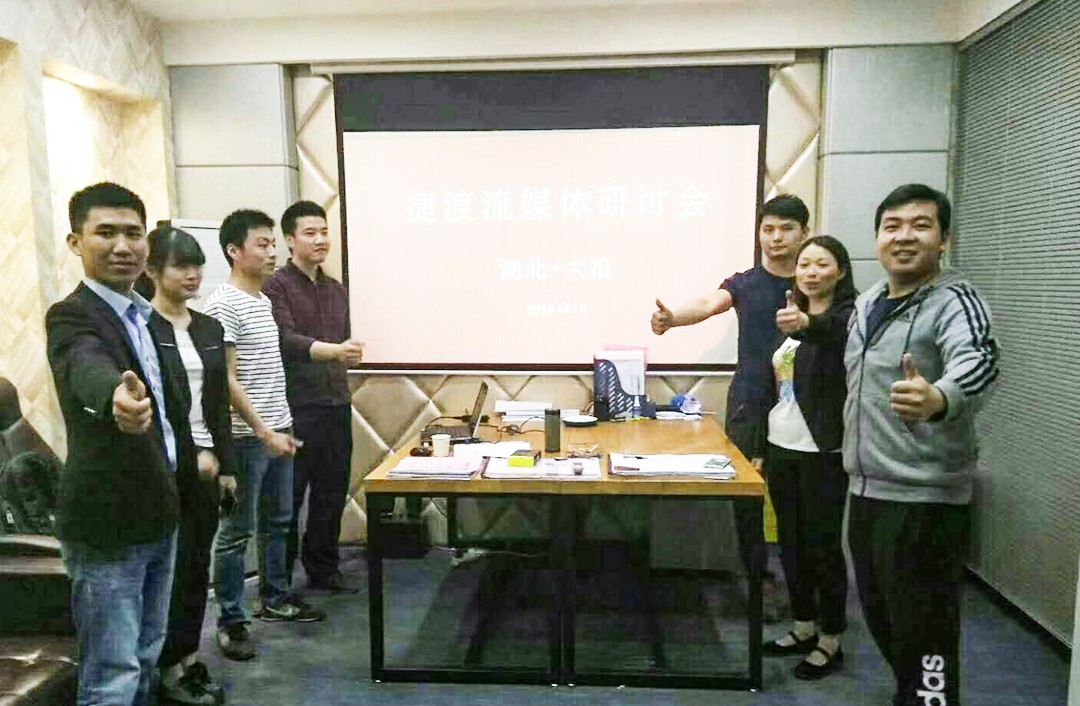 2018年4月9日-24日期間,“VSeries遠界終端智能流媒體 湖北戰區研討會”先后在大冶、鄂州、武漢、恩施等地火熱召開。 JADO捷渡智能(中國)戰區負責人與湖北戰區各戰略合作伙伴開展了學習研討。研討會參會人員覆蓋了VSeries遠界湖北運營商近60家,先后進行了深入的溝通和交流,通過現場研討為終端店找到了新的盈利點以及為市場的需求提供了新的方法和運營之道。