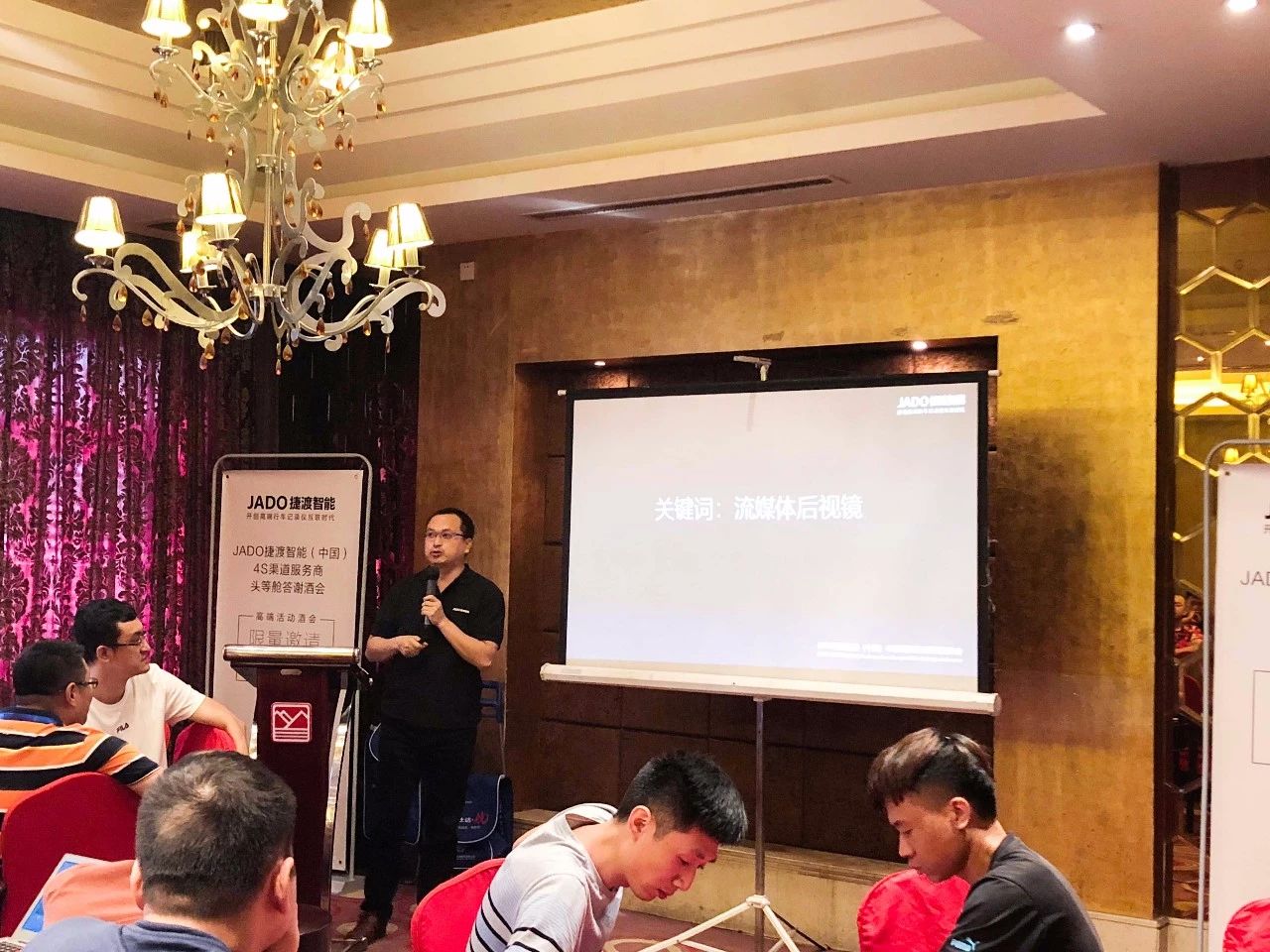 答謝會伊始,JADO捷渡智能(中國)總經理陳問文先生發言致辭,對在座的4S渠道服務商的到來表示由衷的感謝,并強調JADO捷渡智能(中國)將會一如既往的為車主帶來高品質的產品,并會“用心、用情、用專業”帶給大家更優質、更細致的服務。