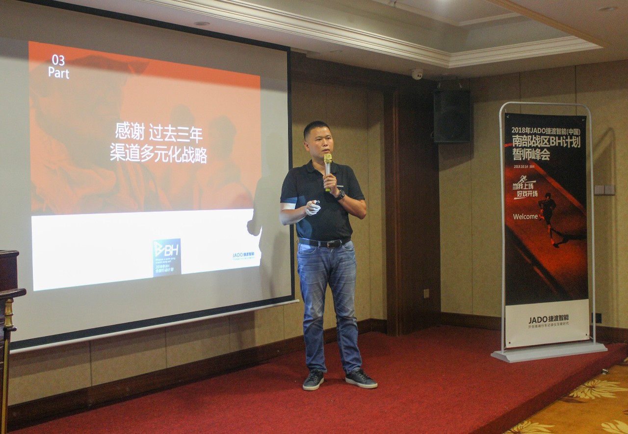 JADO捷渡智能(中國)戰區負責人杜新先生就決勝終端計劃的實施落地方案進行了詳細的介紹。創新活動形式,豐富活動內容,提升獲客渠道,JADO捷渡智能(中國)攜手全國戰略合作伙伴,一起將超高清流媒體后視鏡帶到每一位車主的身邊,幫助每一位車主解決后視盲區的困擾,助力安全行車。