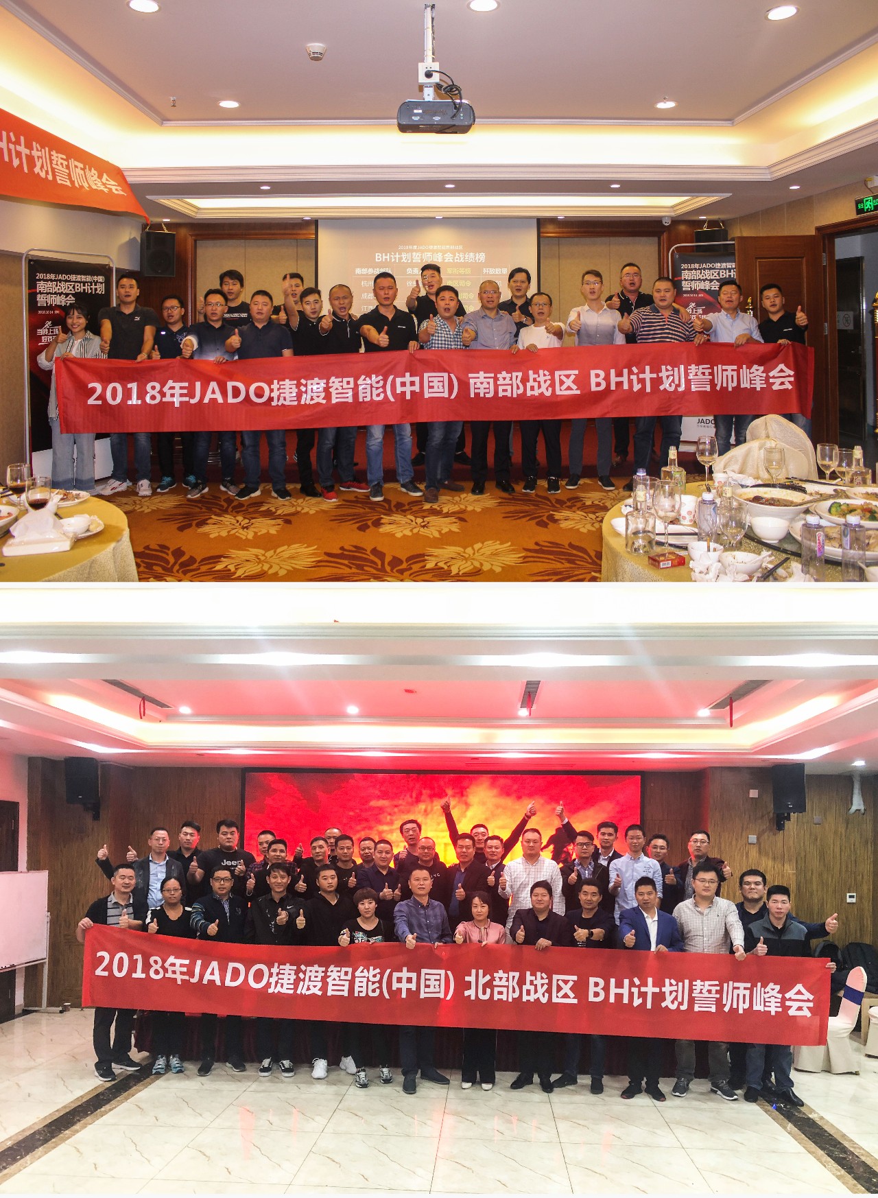 2018年10月14日、18日,JADO捷渡智能(中國)分別在中國·深圳、合肥兩地舉行了主題為“當我上場,好戲開場”的2018年度JADO捷渡智能(中國)南部、北部戰區決勝終端誓師峰會。到場嘉賓有:JADO捷渡智能(中國)董事長王杰先生、營銷中心總經理陳問文先生、營銷中心副總經理劉赟先生以及來自全國的戰略合作伙伴超過100人。