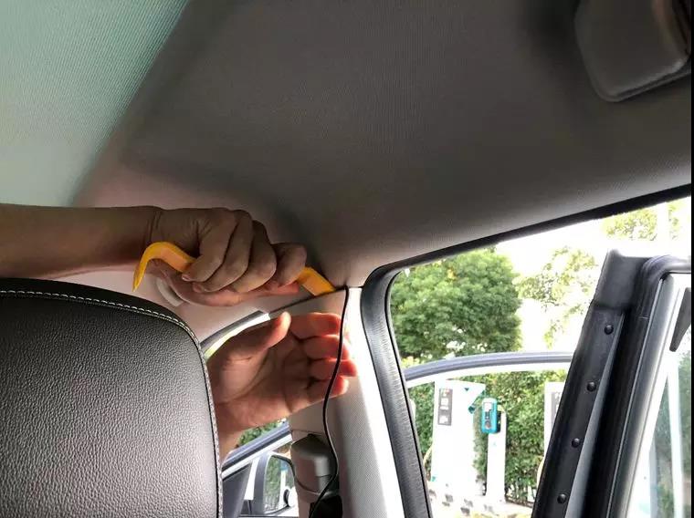哈哈,這是裝車的師傅在走線了。基本就是從塑料板之間的縫隙里面各種穿插直至點煙器位置,還蠻好,挺干凈的。